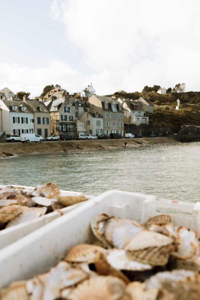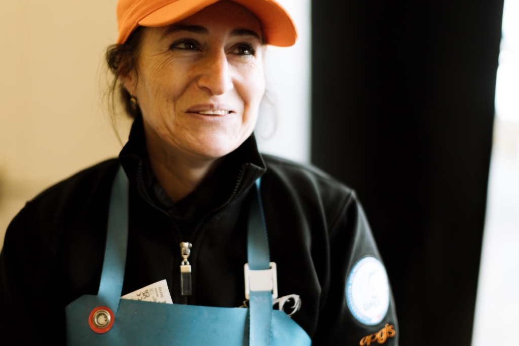 La veille de l’évènement Le Goût du Large, nous retrouvons Ingrid Cano dans son atelier Jeanne Mareyage, tout près du port. Son attachement aux produits de la mer remonte à son enfance : « Ma mère et mon beau-père étaient poissonniers à Paris. J’ai grandi entre les étals, mais après mes études, aucun autre métier ne m’attirait autant. J’ai donc demandé à mon beau-père de m’envoyer à plein temps à la poissonnerie… et je suis tombée amoureuse de ces produits. » Aujourd’hui, Ingrid est mareyeuse, un intermédiaire entre les pêcheurs et les marchés, les poissonneries et les restaurants. Elle connaît chaque bateau, chaque pêcheur, chaque lot de coquilles. Et surtout, elle aime mettre la main à la pâte : « Je ne peux pas rester assise pendant des heures, j’ai besoin de toucher les produits. C’est vivant, c’est sauvage, c’est ce qui me passionne », confie-t-elle, un sourire aux lèvres.