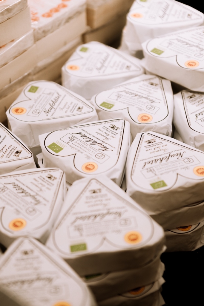 D’où vient cette forme singulière ? La légende raconte qu’au temps de la guerre de Cent Ans, les jeunes femmes du pays offraient des Neufchâtel aux soldats anglais pour leur déclarer leur amour. Histoire vraie ou romancée, le récit a traversé les siècles et participe à la renommée du fromage. Ce qui est certain, en revanche, c’est que celles et ceux qui le produisent aujourd’hui mettent du cœur à l’ouvrage.
